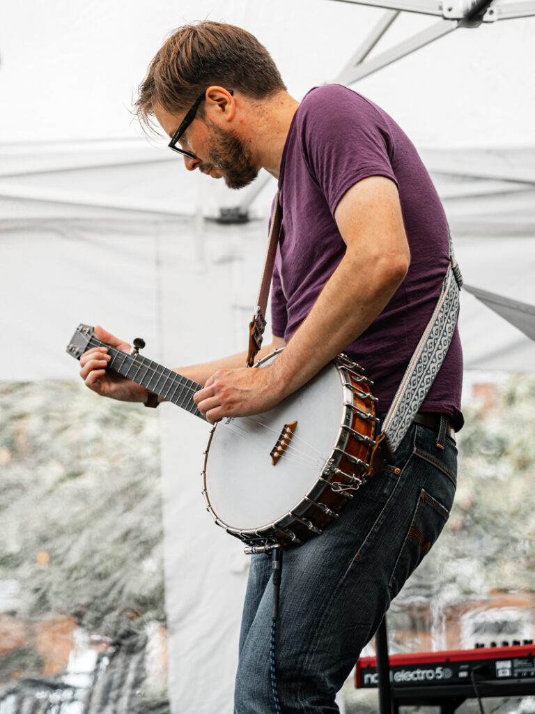 I play a 5-string banjo build by the great Leon Ballard of Suffolk Great Britain.